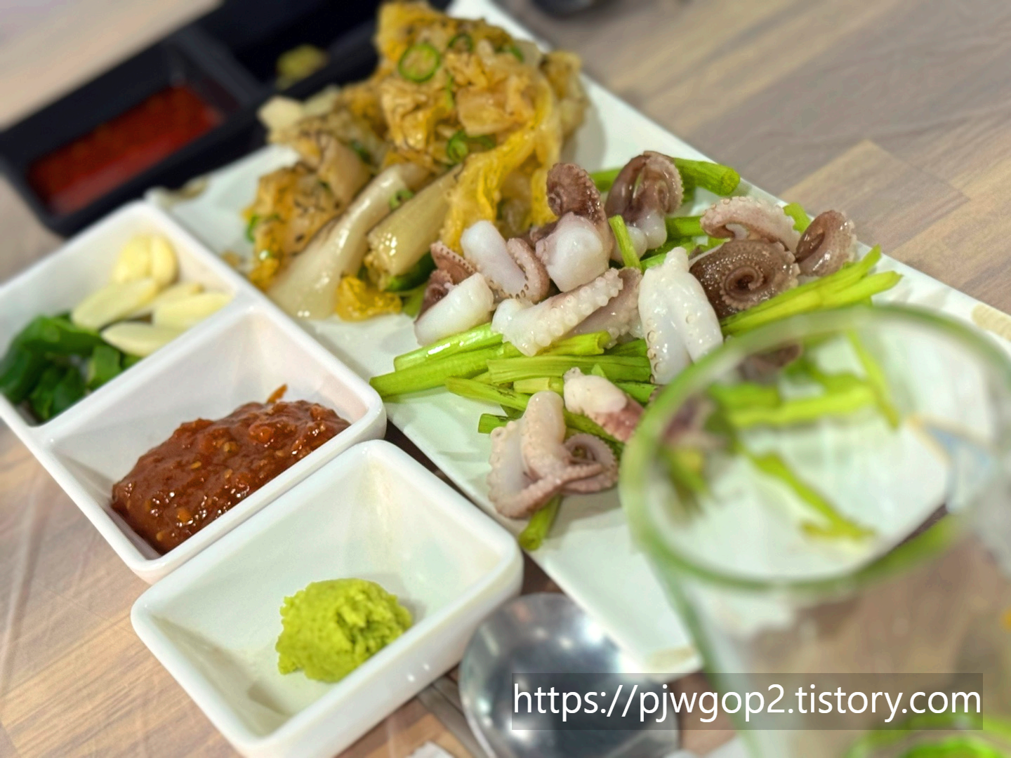 묵은지와 쭈꾸미가 제일 먼저 나오는데 저 묵은지 맛있더라구요.