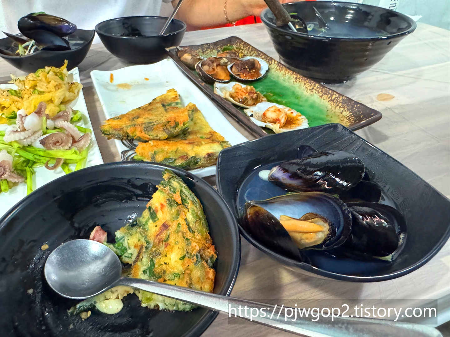 해물파전은 살짝 매운맛이 나서 느끼함을 잡아줍니다.